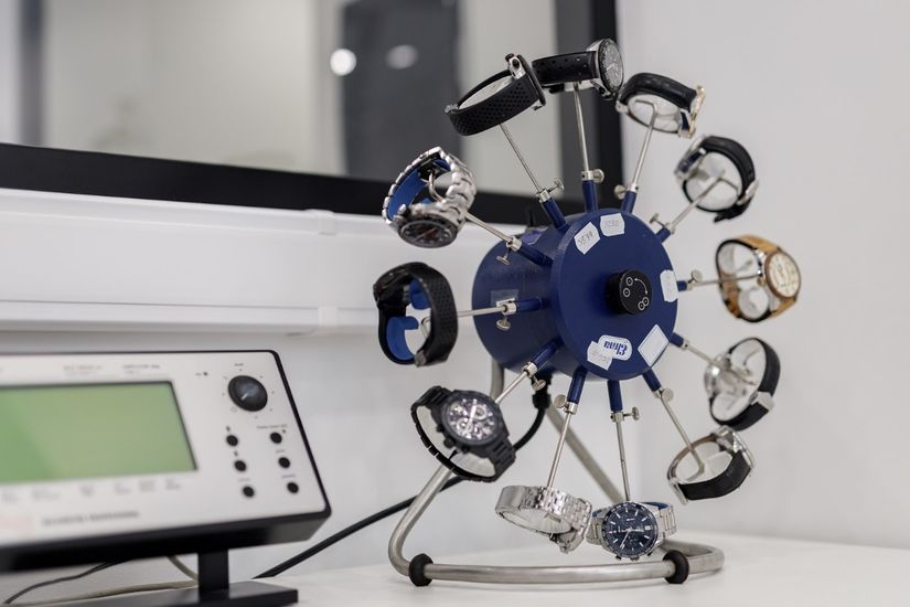 Также много времени уделяется контролю качества, в процессе которого проверяется работа автоподзавода на циклотесте, проверка запаса хода в состоянии покоя. После чего проверяется точность хода при снятии с циклотеста после суток покоя при спущенной пружине.