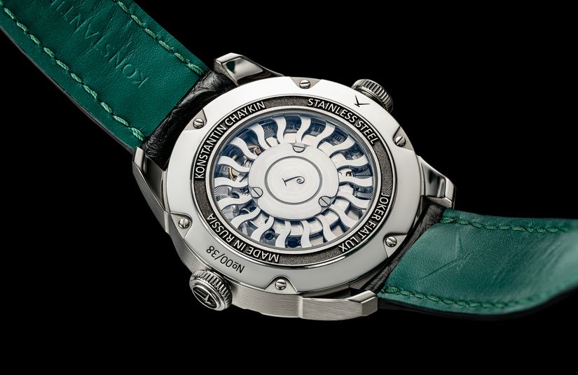 Особый Джокер для Китая - Joker ‘Fiat Lux’ Limited Edition Константина Чайкина выпущен лимитированной серией из38 экземпляров и будет продаваться только в пекинском West Wood Time. Название новинки отсылает к главной идее - при создании скелетонированного циферблата передать ощущение от солнечных лучей, проникающих сквозь бамбуковые занавеси. Скелетонирование позволило создать первый ристмон, который позволяет владельцу часов видеть фирменный модуль джокер-индикации со стороны циферблата.