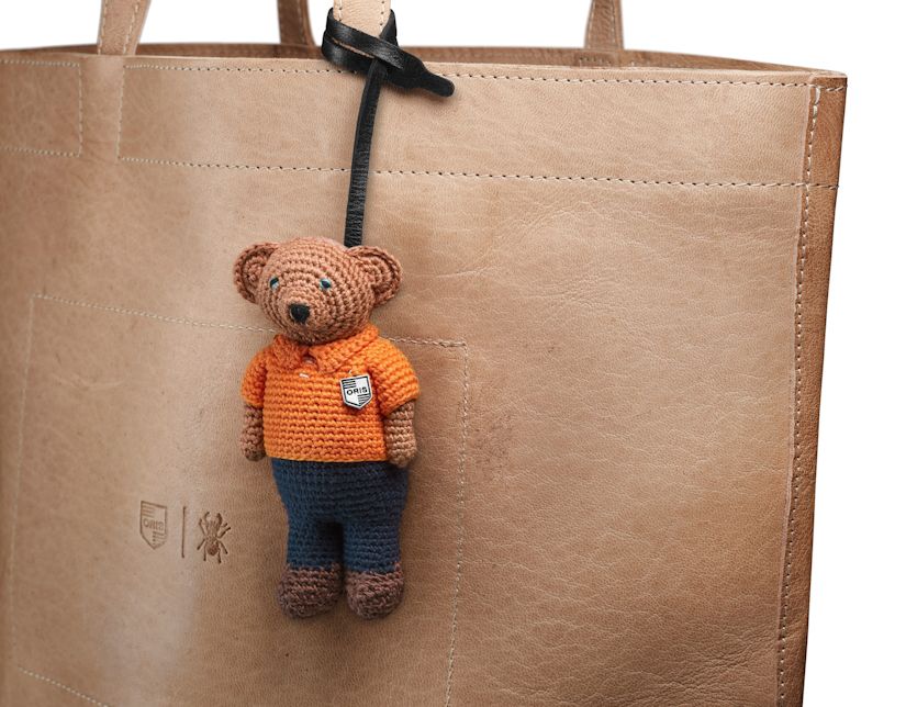 Oris поддался на моду на обвес сумок и представил своего любимого медвежонка в виде брелка. На самом деле история с социальным подтекстом - брелок изготовлен вручную из переработанной ткани афганскими женщинами-беженками, работающими в организации Silaiwali в Индии.