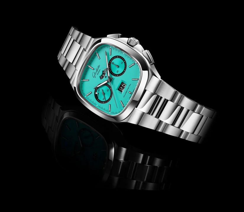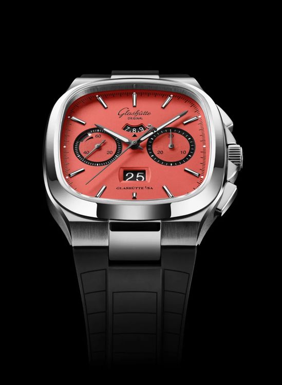 Glashütte Original представила часы в модном сегодня "некруглом" корпусе Seventies Chronograph Panorama Date в оттенках под оригинальными названиями "арбуз" и "бассейн".