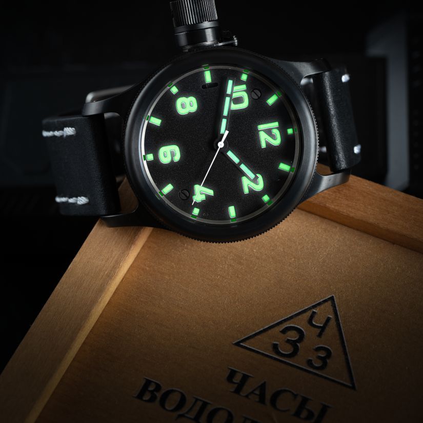 Внушительный по своим размерам (ни много ни мало, 60 мм!) цельнометаллический корпус-монокок обеспечивал главную функцию изделия, надежно защищая спрятанный внутри часовой механизм от попадания влаги. Покрытые светонакопительным составом стрелки ярко светились и были отлично видны через органическое стекло (позже его заменили на сапфировое). Ход времени такого механизма не могло нарушить даже давление в десятки атмосфер.