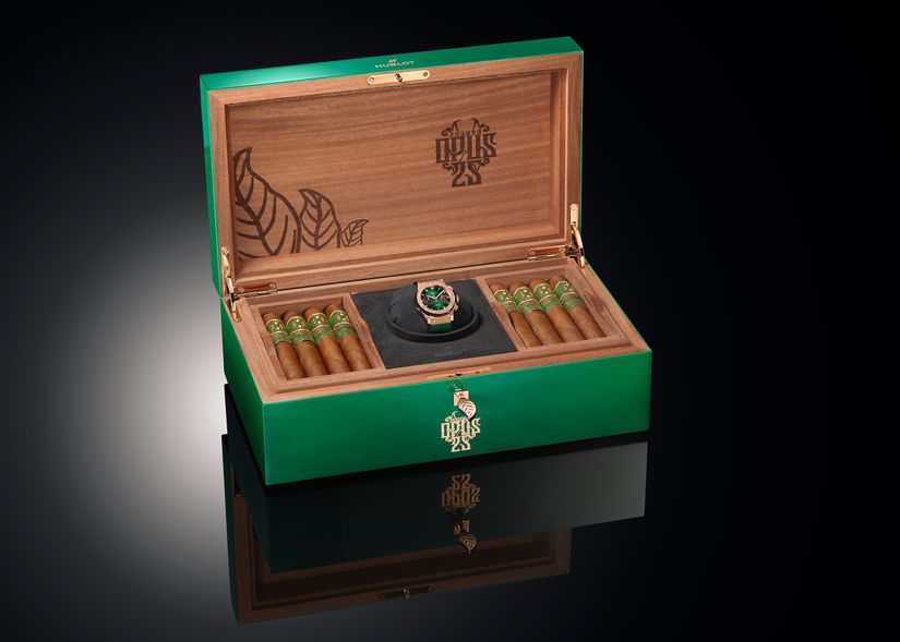 В честь 25-летия бренда сигар OpusX бренд Hublot выпустил специальную серию часов. Хронограф Classic Fusion Chronograph Arturo Fuente King Gold, представленный лимитированной серией в количестве 50 экземпляров, - уже шестой совместный проект часовой мануфактуры и производителя сигар класса люкс Fuente Fuente OpusX.