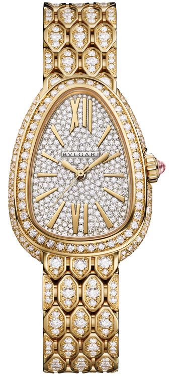 Новым механизмом оснастили часы Serpenti Seduttori Automatic. В серии представлены модели в корпусе 34 мм из желтого и розового золота, из стали и стали с ободком из розового золота с 36 круглыми бриллиантами.