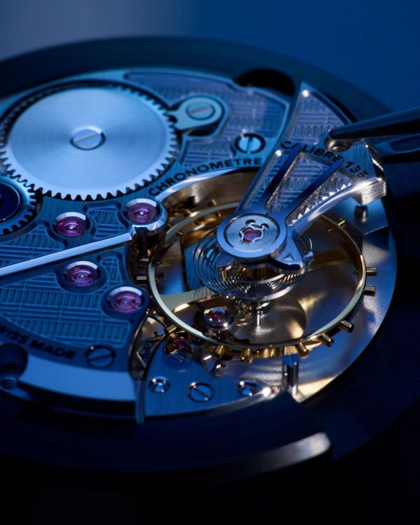 Балансовое колесо (2,5 Гц) дополнено регулировочными винтами и завитком Бреге. Кроме того, был добавлен механизм остановки секундной стрелки. Точность +/-2 сек/сутки подтверждена COSC.