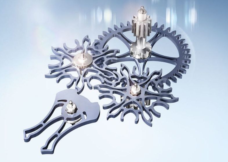 В Rolex 7135 колесо, связанное с заводным барабаном, приводит в движение два колеса зубчатой передачи, которые действуют на рычаг, поддерживающий колебательные движения балансового колеса.