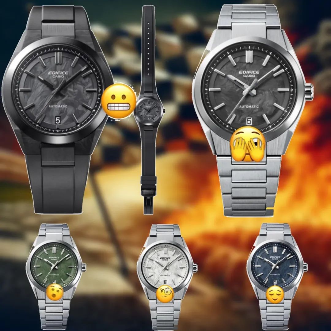 Первые механические Casio Edifice, судя по утечкам в сети от Geesghock, появятся в июне. Он же публикует и изображения моделей. Новинки получат номер EFK-100 и будут использовать модуль 5755 на основе автоматического Seiko NH35. Точная цена остается неизвестной, но автор утечки называет потенциальные цифры около €270-300 за вариант из стали и €400-500 за версию из карбона.