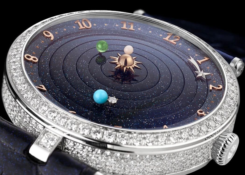 Кинопродюсер Керианн Флинн взяла с собой часы Lady Arpels Planétarium из коллекции Poetic Complications от Van Cleef & Arpels. Модель из белого золота оснащается циферблатом, который отображает миниатюрную солнечную систему с золотым солнцем в центре и ближайшими планетами: Меркурием из розового перламутра, Венерой, покрытой зеленой эмалью, Землей из бирюзовой эмали и бриллиантом, представляющим Луну, каждая из которых вращается со своей реальной скоростью. Падающая звезда из белого золота указывает время.