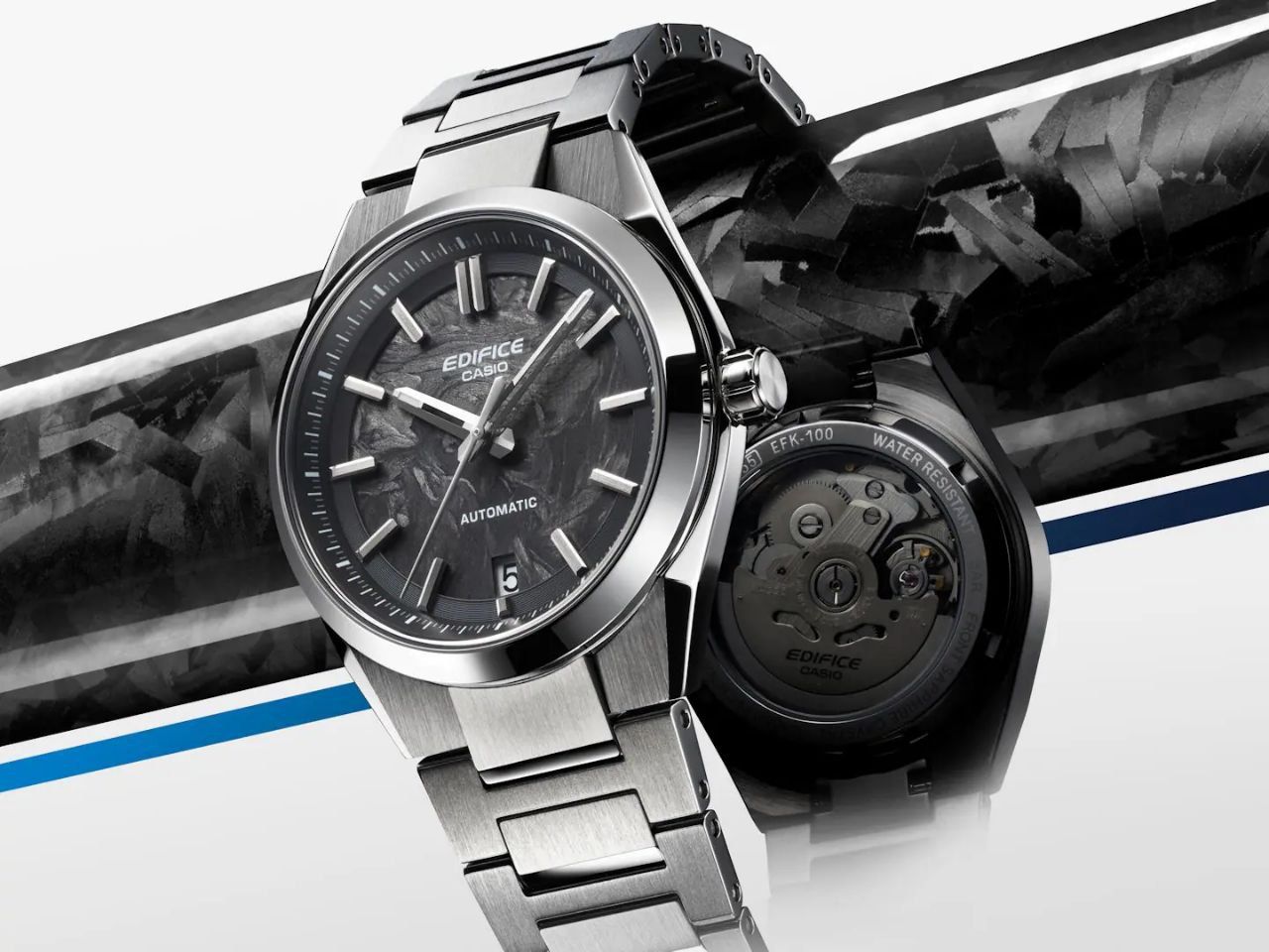 Помимо флагманской карбоновой версии, Casio представит и более доступные варианты. Модель EFK-100CD получила стальной корпус и браслет, но сохранила карбоновый циферблат и сапфировое стекло. Ее цена составит около 300 евро. Еще одна версия - EFK-100D - будет отличаться дымчатым циферблатом и серебристыми стрелками. Все модели объединяет спортивный стиль, характерный для линейки Edifice, и хорошая для своего класса водонепроницаемость.