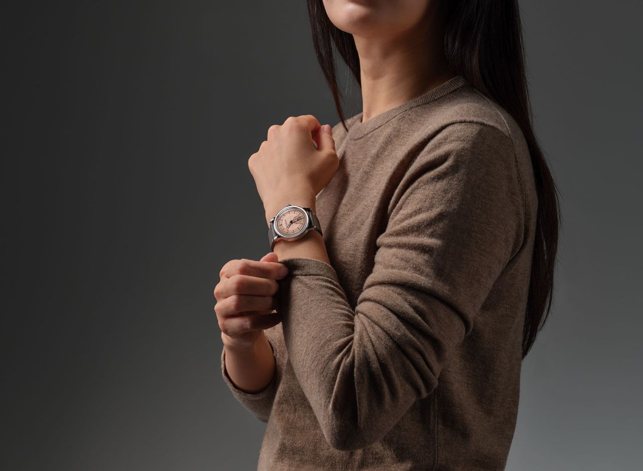 Выпущены 4 цветовых решения: лососевый циферблат на сером ремешке, антрацитовый циферблат с мятной минутной шкалой на коричневом ремешке, серебристый циферблат на сером ремне (эта тройка в стали) и кремовый циферблат в корпусе с PVD-покрытием из розового золота с ушками с 16 бриллиантами на ремешке оттенка "бургунди".