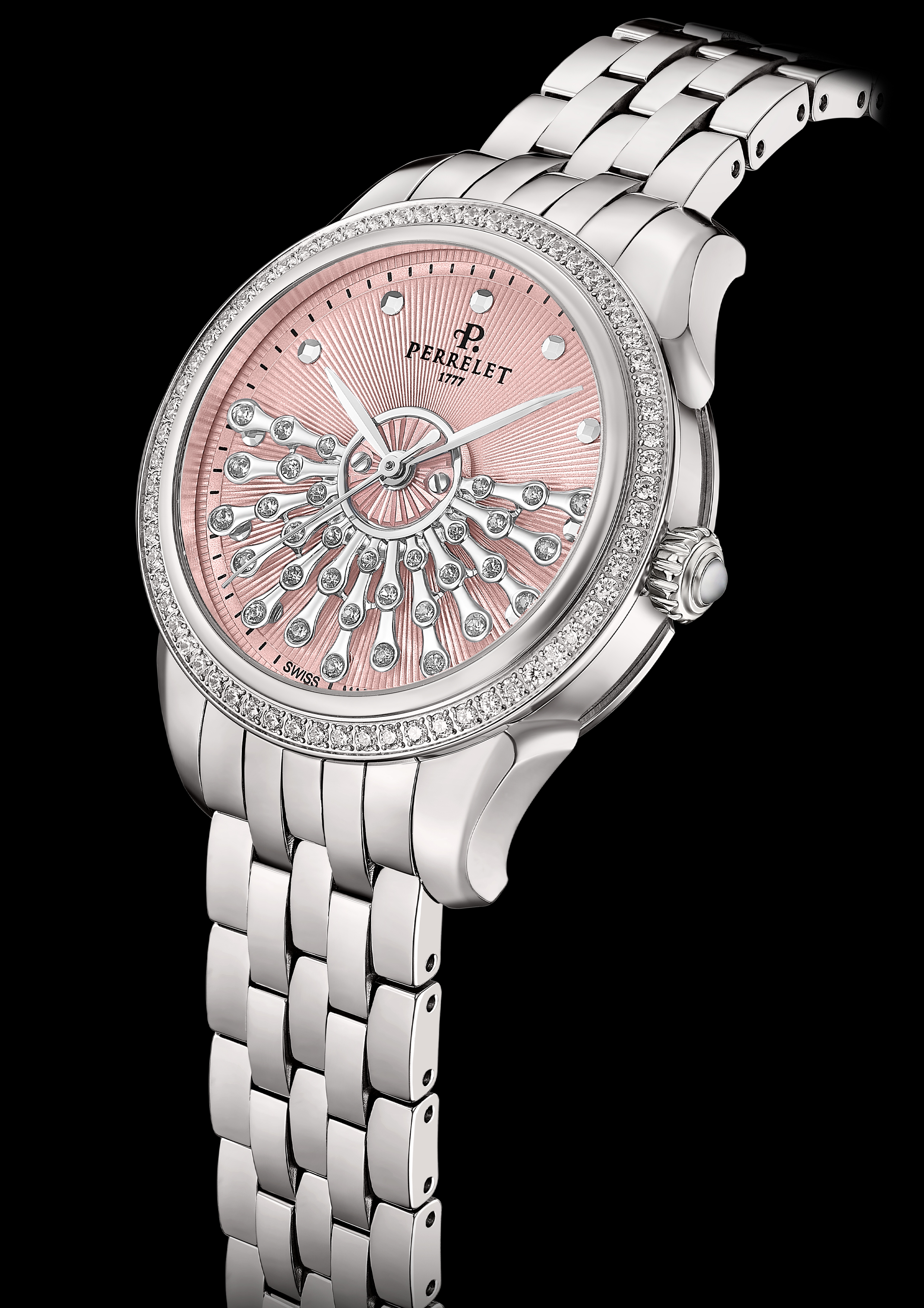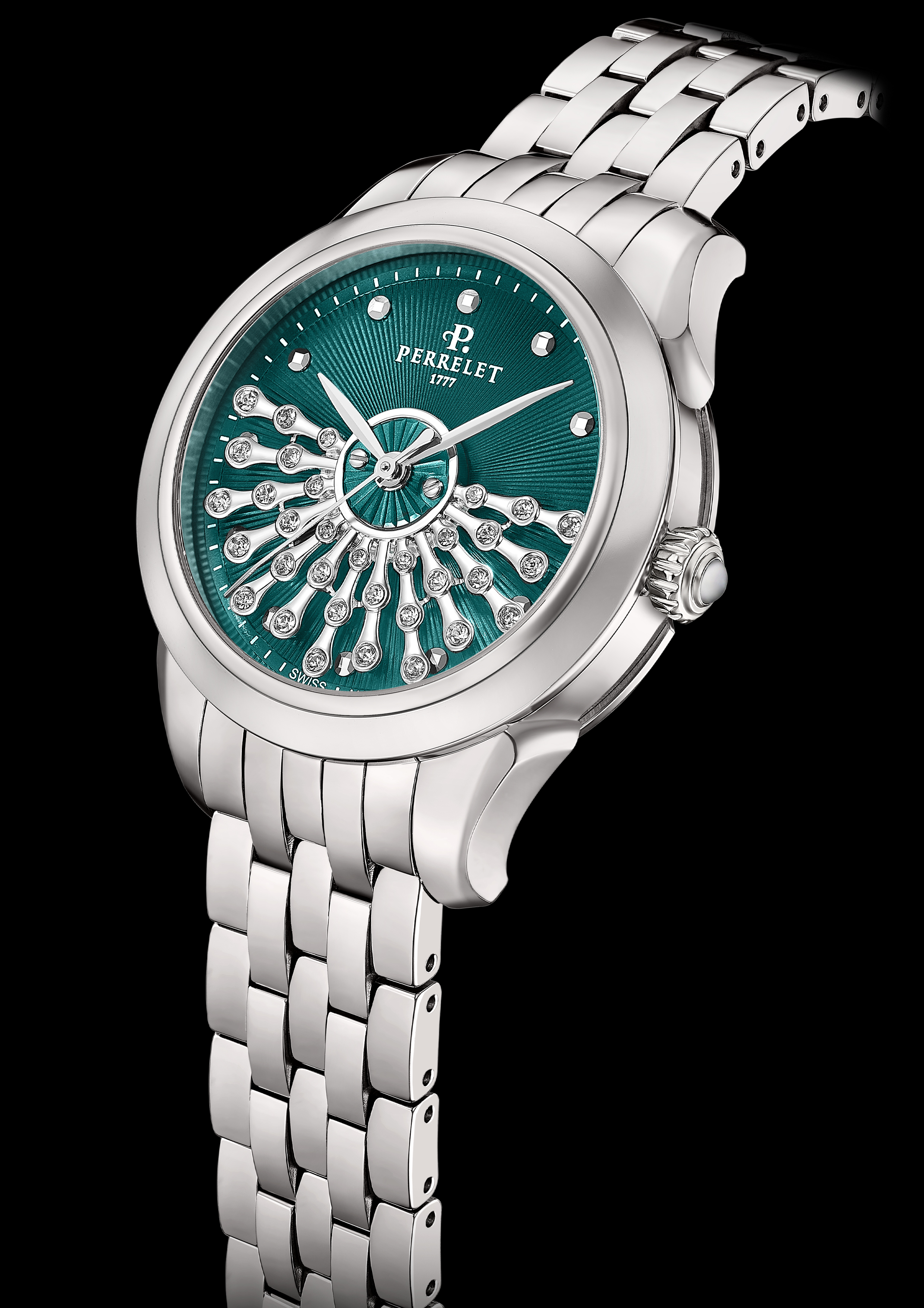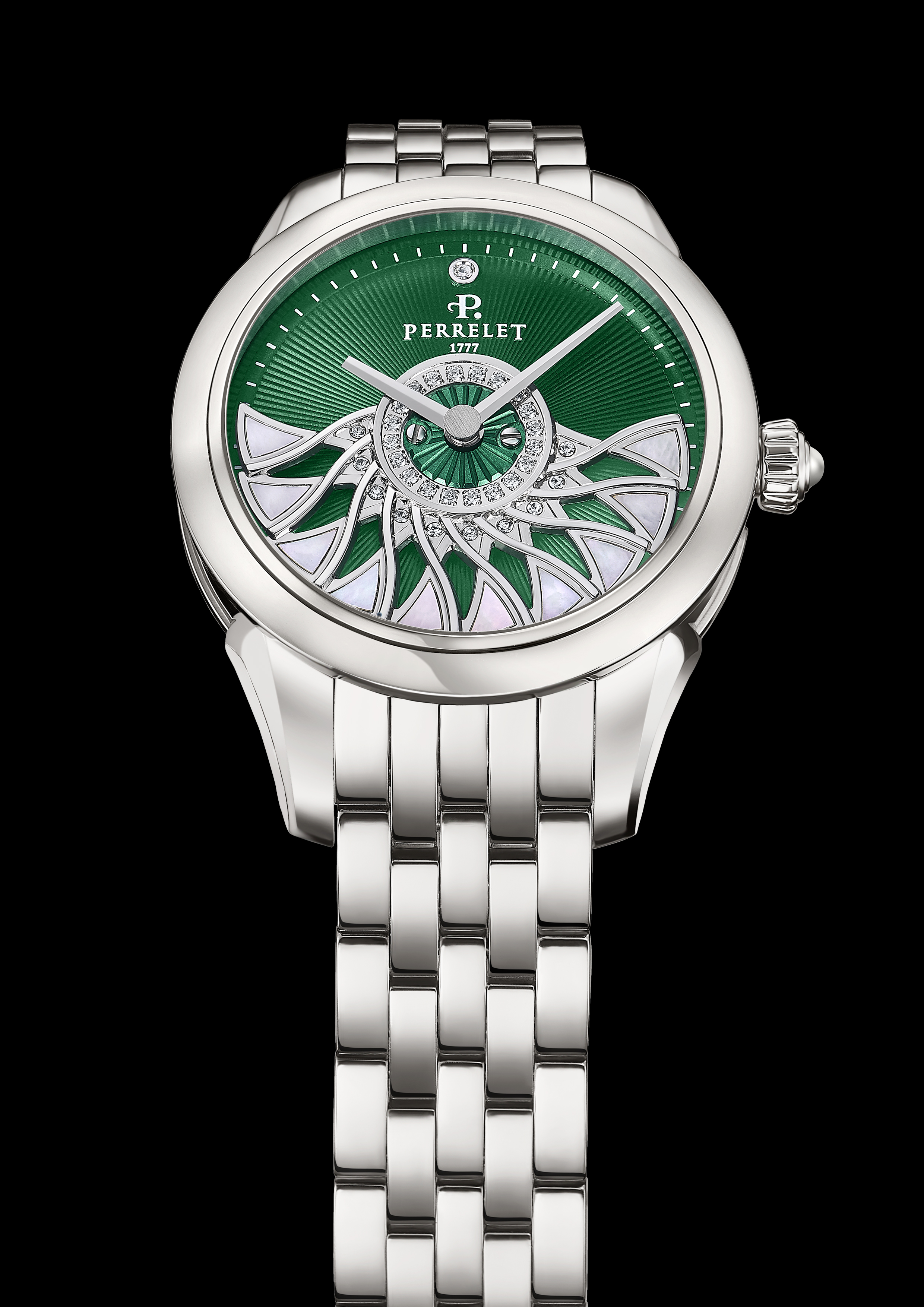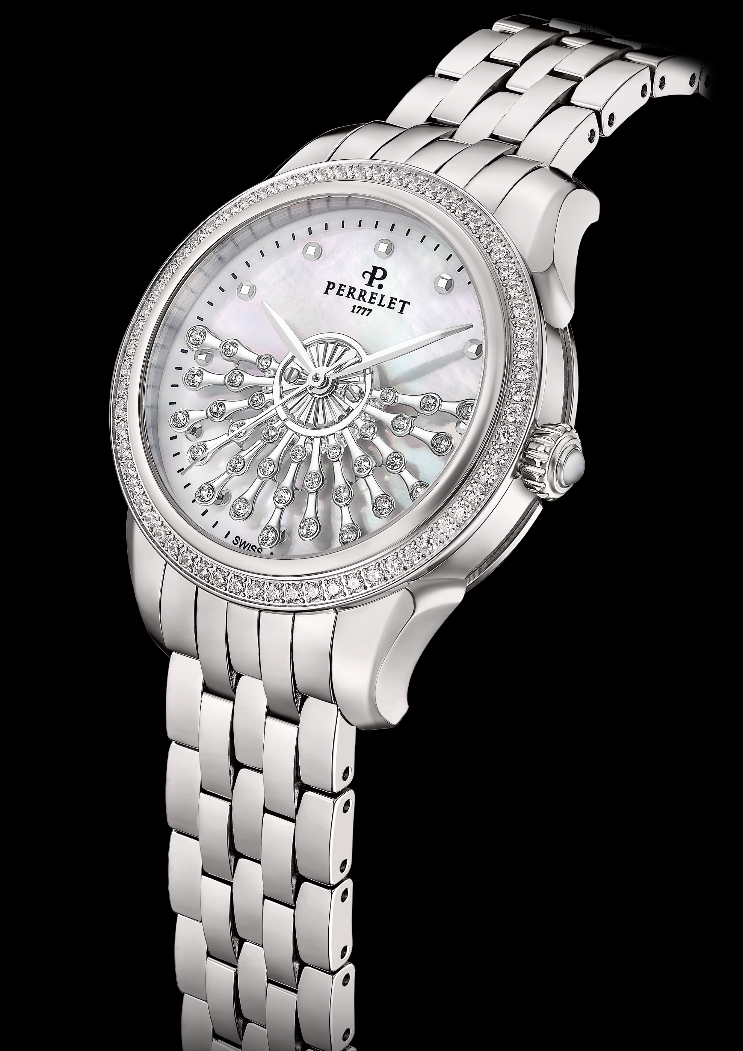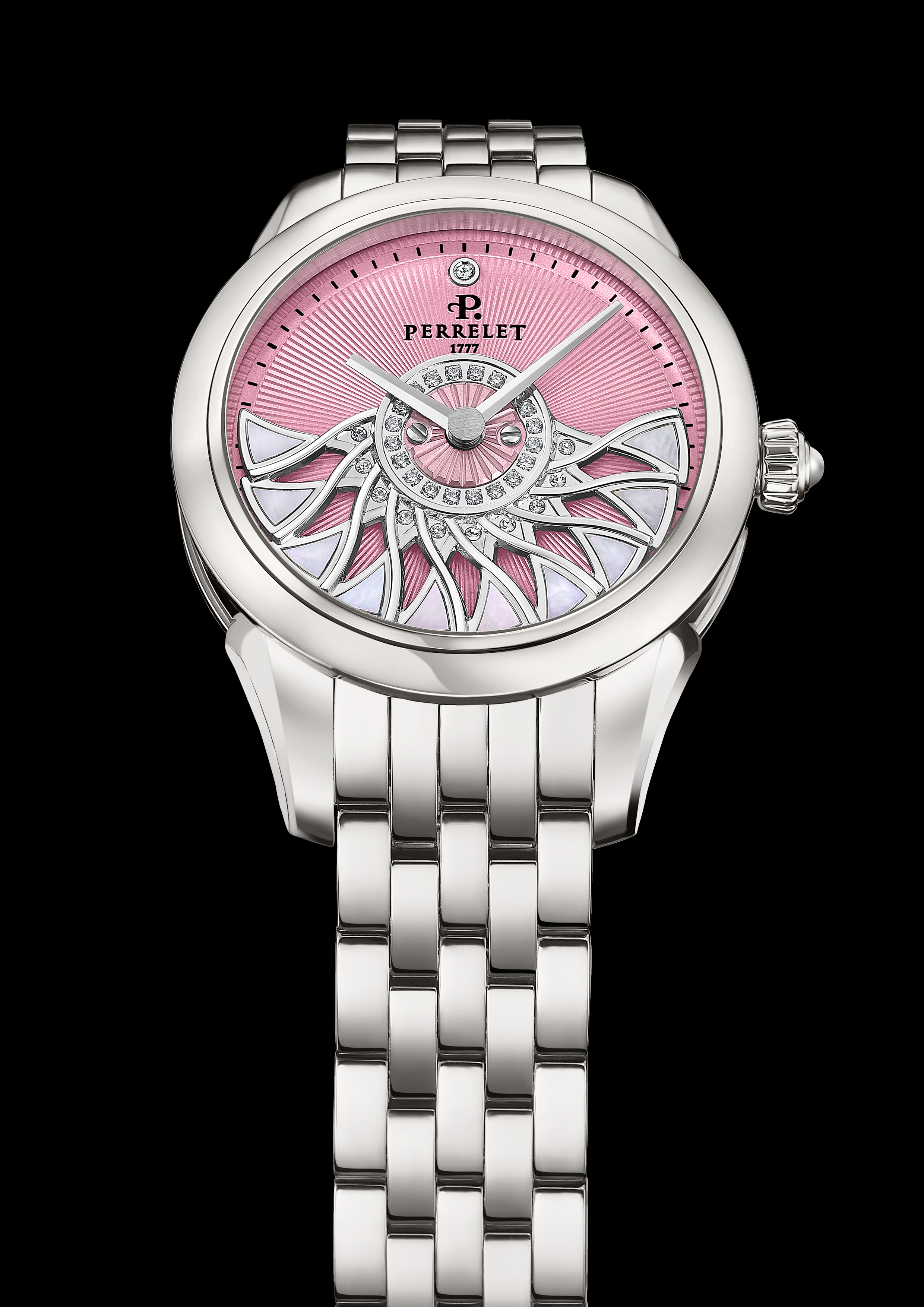 Эти элементы - часть двойного ротора, изобретенного Perrelet в 1995-м и переосмысленного для женских моделей в 2008-м.
