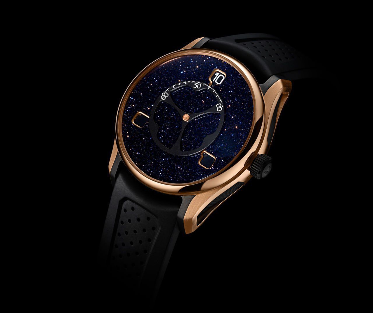 Первая модель из красного золота 5N с титановыми вставками с DLC-покрытием черного цвета имеет циферблат из авантюрина (лимит 100 экземпляров).