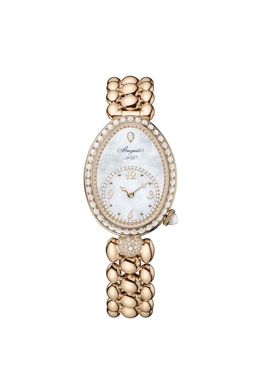 Reine de Naples 8925 с калибром 586/1 выпущены в 3 версиях: белый перламутр, золотой тон Breguet и черный авантюрин.