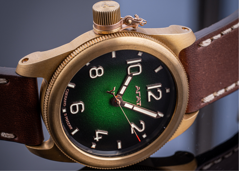 Никуда не делось и главное конкурентное преимущество златоустовских часов, отличающее их от прочих хронометров – экстремальная водонепроницаемость. Корпус стал значительно тоньше (и легче!), но это всё тот же монокок, выточенный из цельного куска металла и надежно защищающий часовой механизм. Заводную головку для которого все также плотно закрывает защитный колпачок на миниатюрной, но очень прочной стальной цепочке. Прежняя общая брутальность налицо, но образ «часы-мачо» смягчился благодаря выгравированной на колпачке крошечной буковке «А» - от «АГАТ», названия компании-производителя водолазных часов.