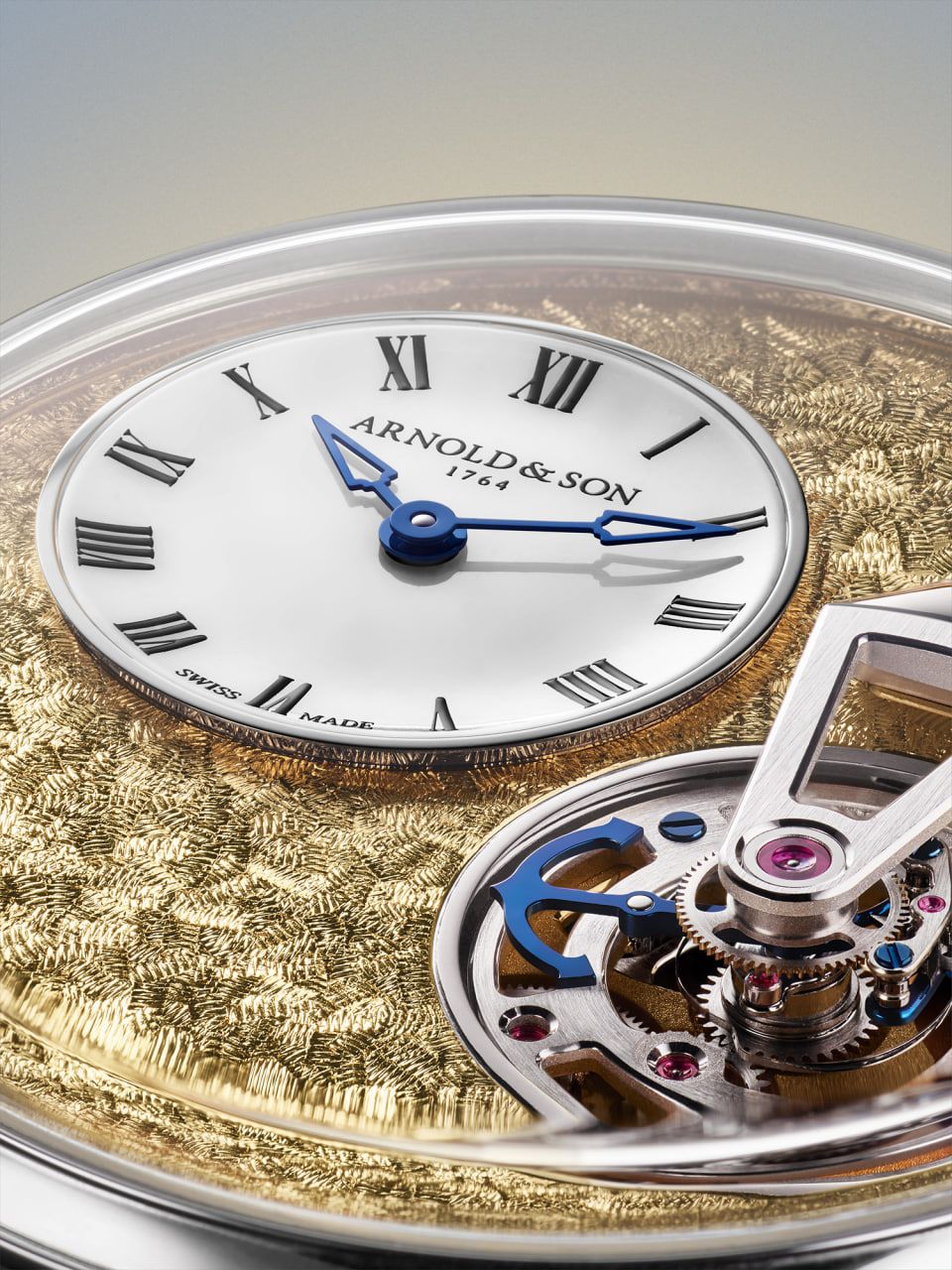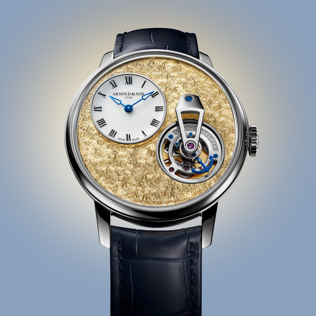 Наносимый вручную резцом узор украсил часы Constant Force Tourbillon 11. Они выпущены Arnold & Son в честь модели, подаренной Абрахамом-Луи Бреге Джону Арнольду в 1808 году.