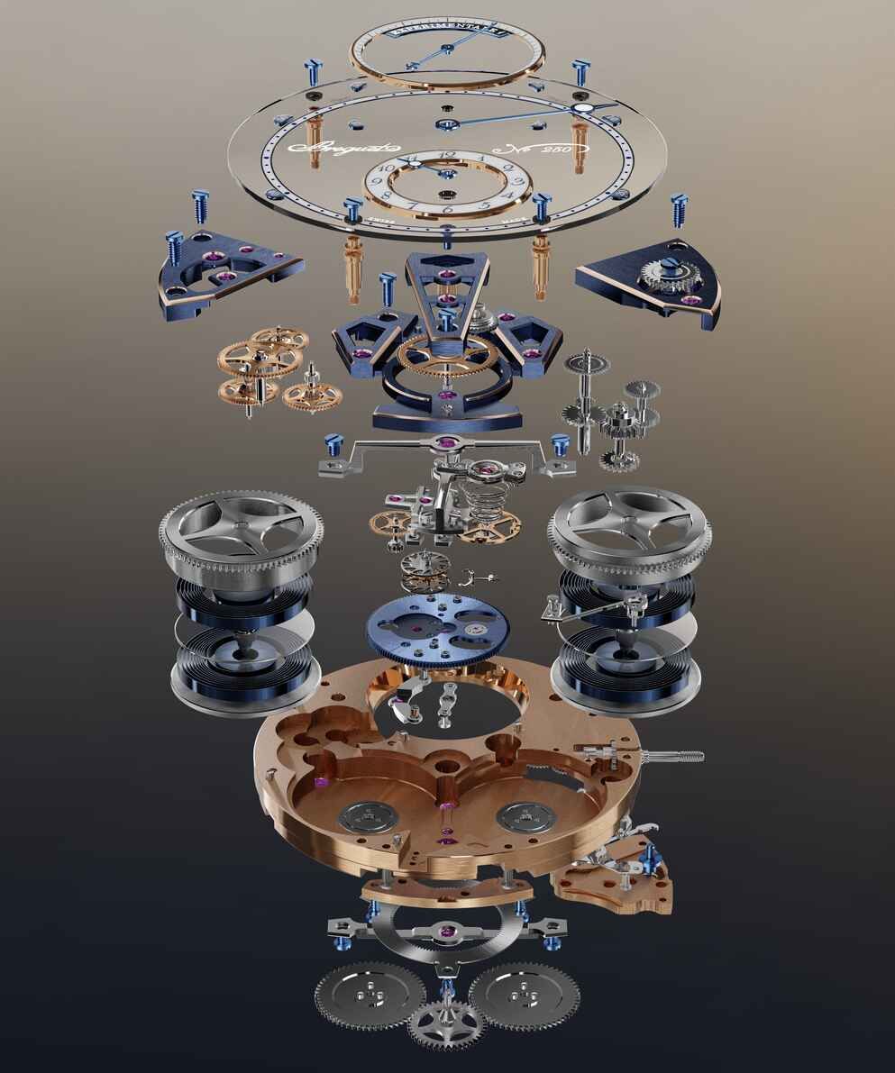 Новый механизм 7250 с кремниевой балансовой пружиной и ручным заводом оснащен двумя спусковыми колесами.