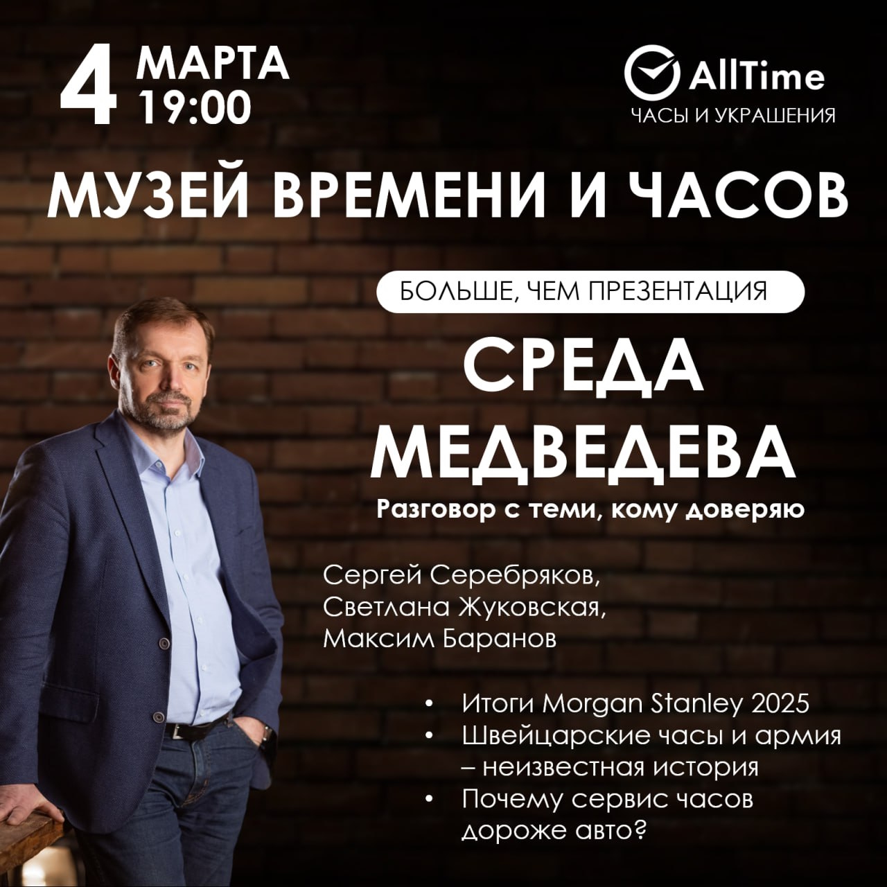 В среду, 4 марта, состоится первое в своем роде мероприятие: «Среда Медведева». Это не очередное официальное мероприятие. Журналист и ведущий YouTube-канала Вячеслав Медведев создает пространство для тех, кто хочет заглянуть за кулисы часового мира и узнать правду о часах.