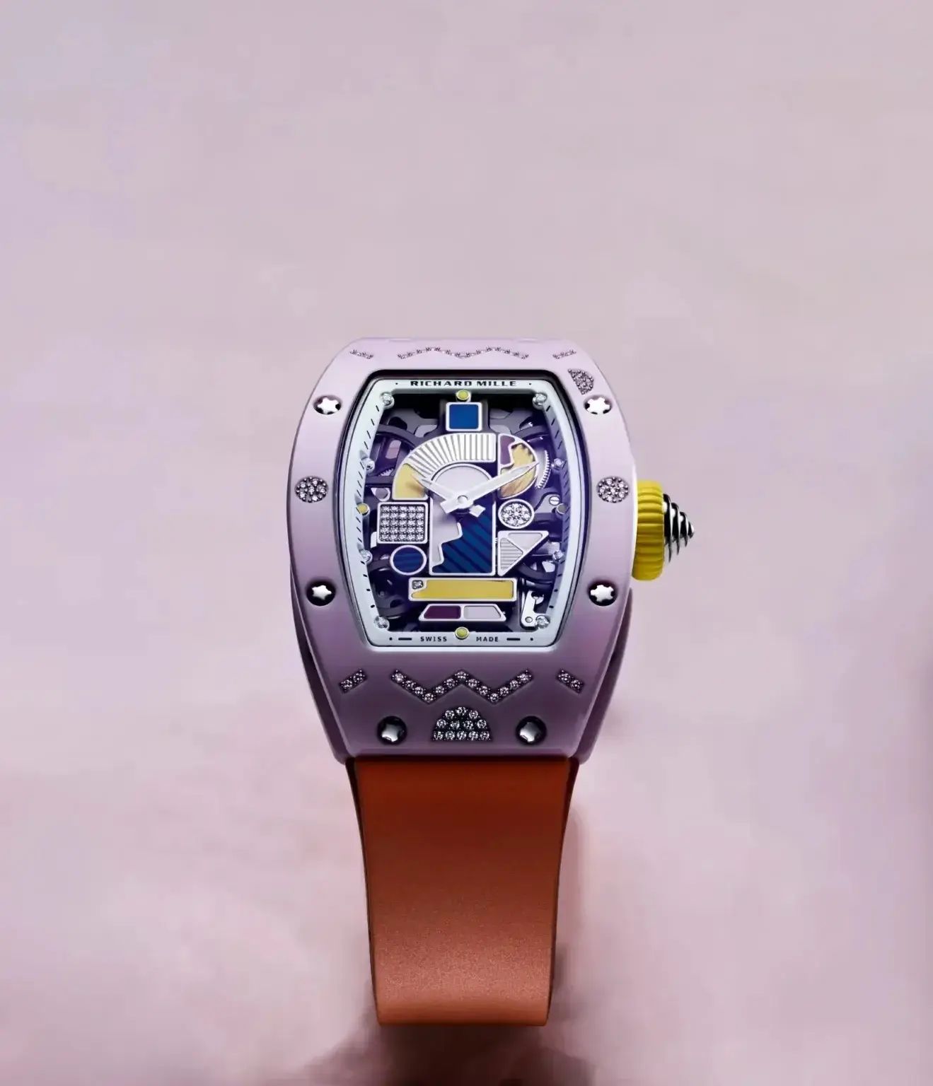 Корпусное кольцо из золота тоже дополнено драгоценными камнями. У каждой из версий - своими. RM 07-01 Blush Pink объединяет бриллианты и желтые и синие сапфиры, RM 07-01 Powder Blue – бриллианты, розовые сапфиры и цавориты, RM 07-01 Lavender Pink - бриллианты, оранжевые сапфиры и рубины. За неординарный микс материалов в корпусе 31,40 x 45,23 x 11,85 мм просят 363 000 долларов.