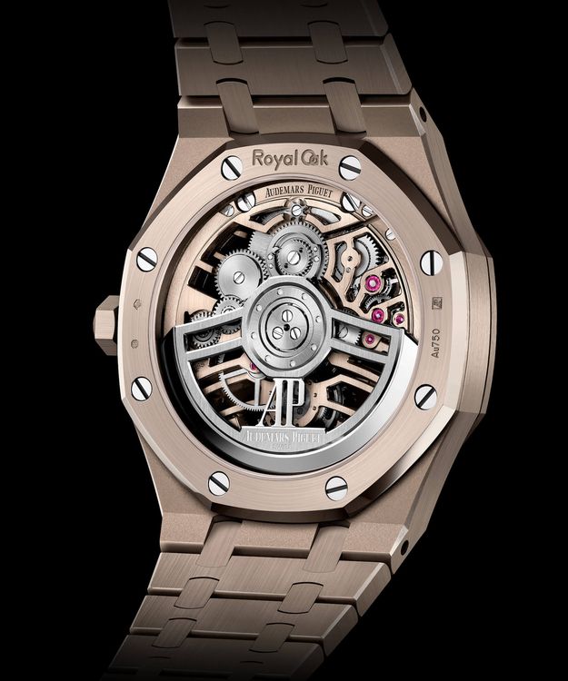 Модель оснащена калибром 2972, который был впервые выпущен в 2022 году к 50-летнему юбилею Royal Oak. Его ажурная конструкция преимущественно изготовлена из латуни, покрытой "песчаным золотом". Ротор выполнен из обычного розового золота с родиевым покрытием. Размер корпуса - 41 x 10,6 мм.