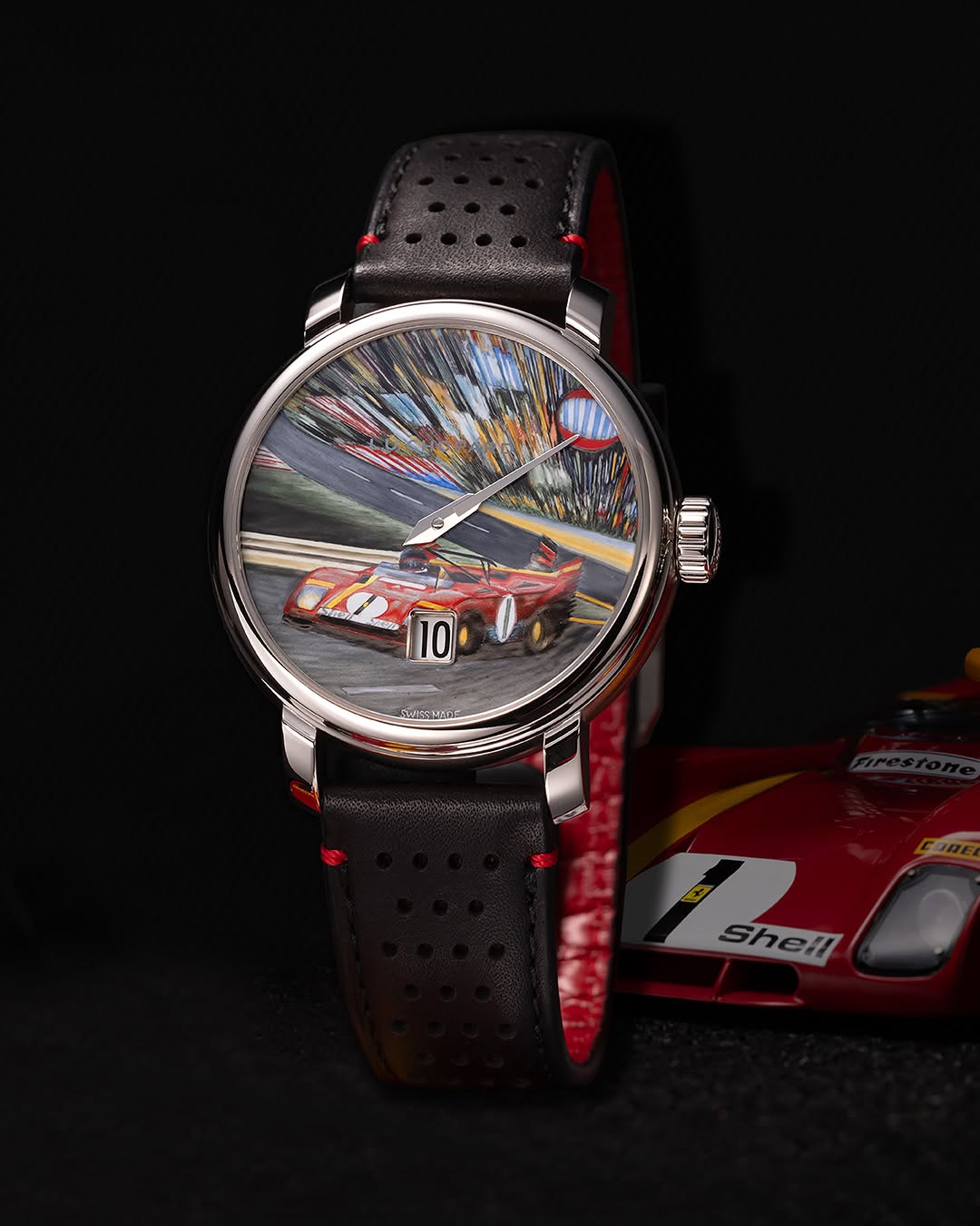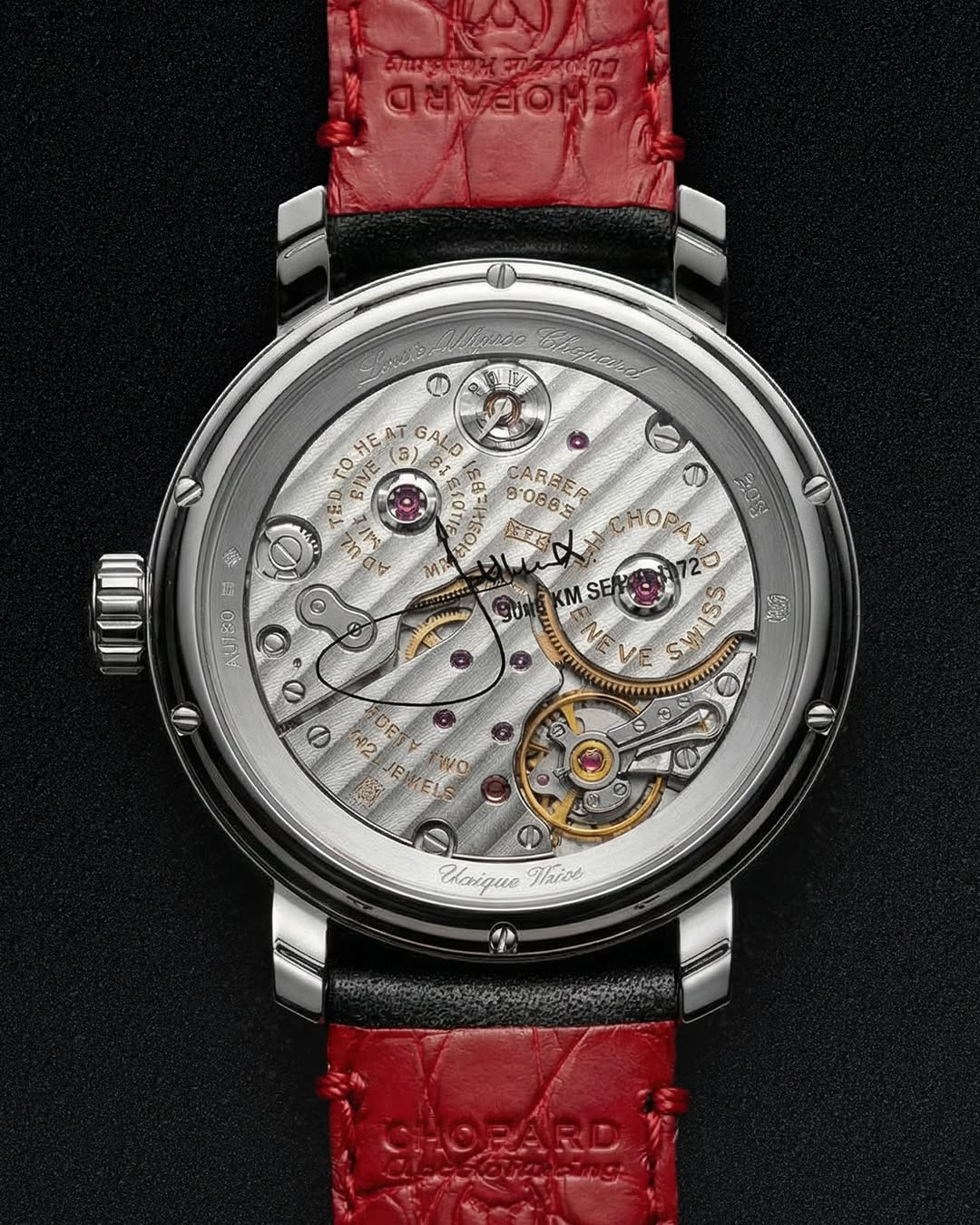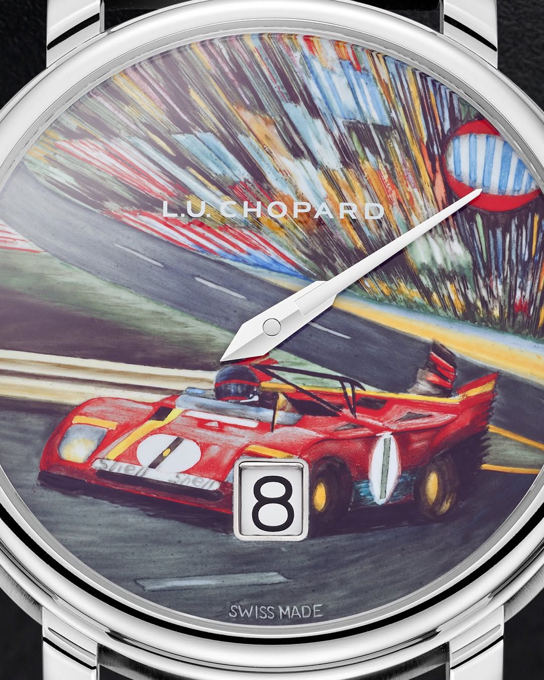 В 1972-м фотограф запечатлел гонщика на «1000 км Спа», теперь изображение было выполнено на циферблате эмальером на собственной мануфактуре Chopard в Флерье.