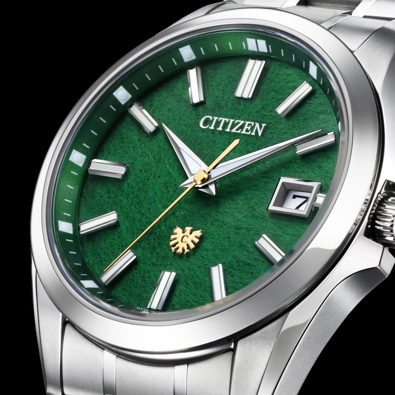 Юбилейная новинка Citizen к 50-летию технологии Eco-Drive - лимитка (650 экземпляров) за 3100 долларов в корпусе из Super Titanium с покрытием Duratect Platinum. Особая изюминка новинки - циферблат из традиционной японской бумаги ручной работы васи, окрашенной пигментом травы ибуки кариясу.