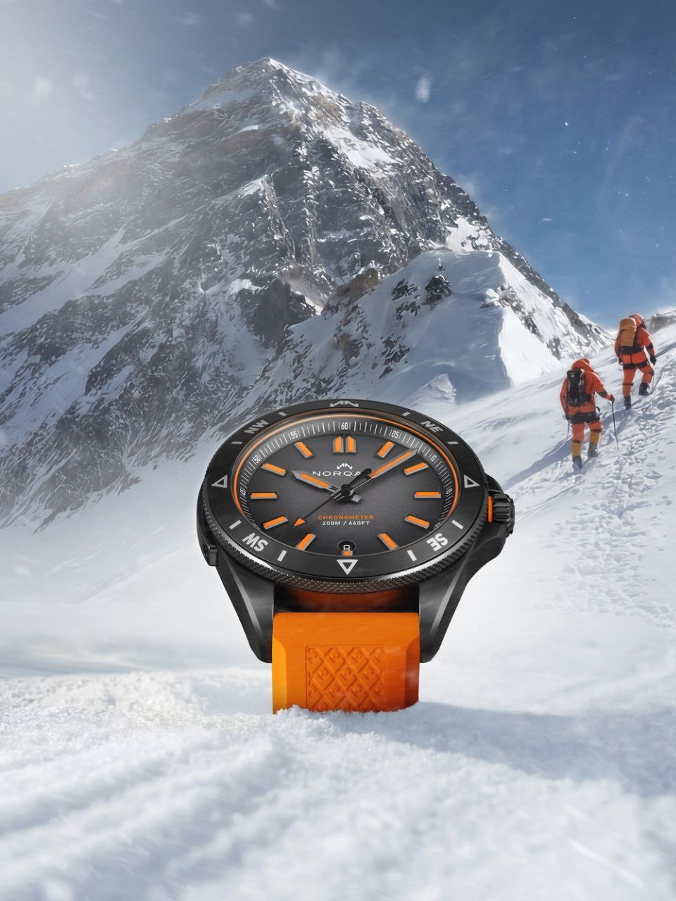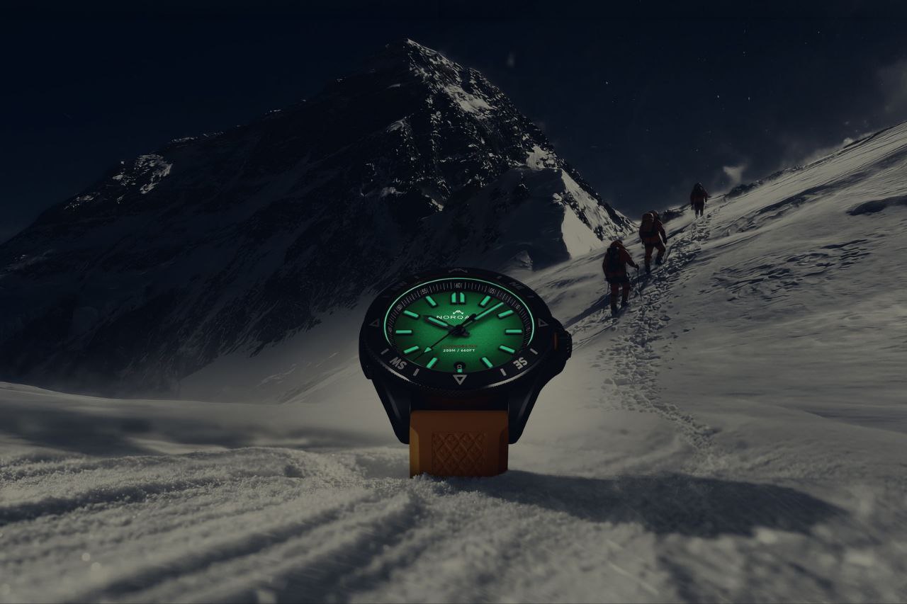 Немного устали от зимних рекламных кампаний, но часы важнее. Если на новые 40-миллиметровые Adventure от Norqain надо смотреть на фоне снега, а не тюльпанов, посмотрим. Решающими тут стали горы, узор из которых украшает циферблат (хотя горы могут быть и покрыты цветущим маральником).