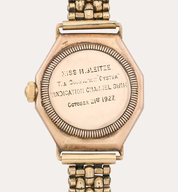 Часы появились на торгах Sotheby's впервые за 25 лет. 7 октября 1927 года Гляйце стала первой британкой, переплывшей Ла-Манш, - за пятнадцать часов и пятнадцать минут. Заплывов было несколько- в успехе первого усомнились и Гляйтце поплыла ещё раз 2 недели спустя, и уже в Rolex (тогда компания воспользовалась возможностью протестировать недавно запатентованные водонепроницаемые Oyster).