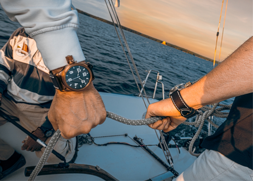 Несмотря на внушительные габариты, часы АГАТ легко становятся частью образа своего владельца. Не подстраиваясь, а завершая его. Они ставят весомую финальную точку, подчеркивая уверенность, ощущение силы и внутреннего стержня. Не кричат о себе, но всегда заметны. Не гонятся за модой, но не теряют актуальности.