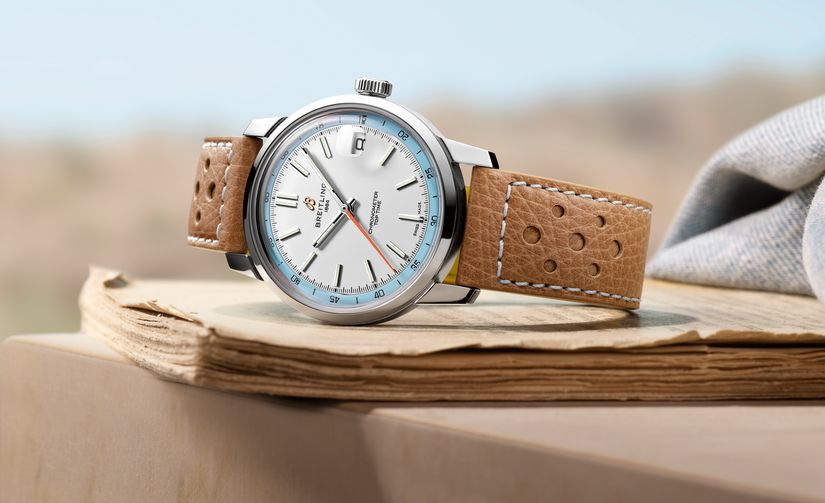 Часы с синим, зеленым и белым циферблатом с голубым ободком представлены в стальных корпусах 38 х 10,3 мм. Модели предлагаются как на ремешках, так и на браслетах.