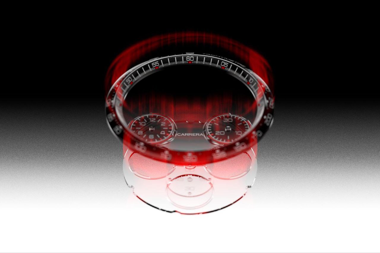 Циферблат часов Carrera Split-Seconds Chronograph из полупрозрачного акрилового стекла позволяет увидеть калибр TH81-01.