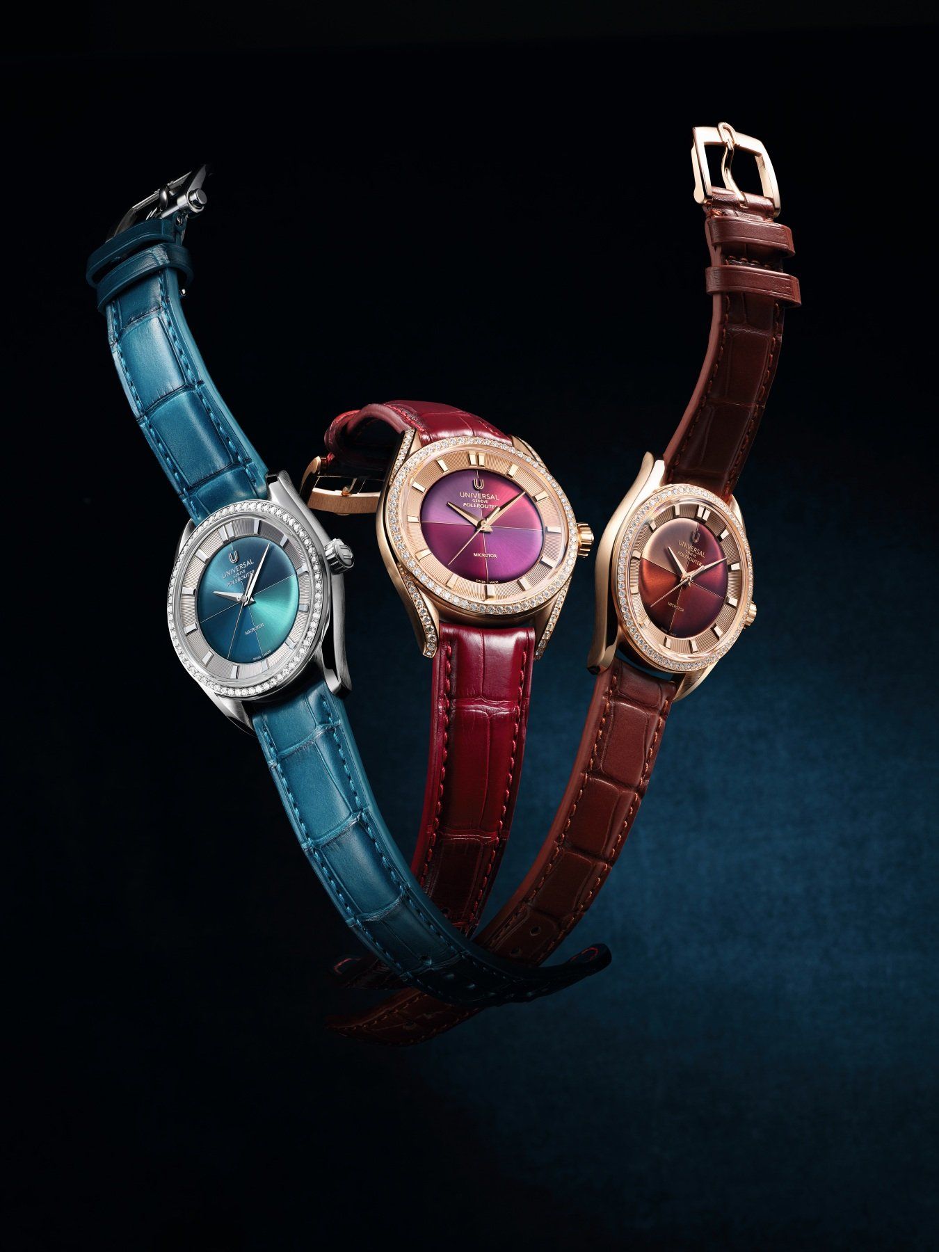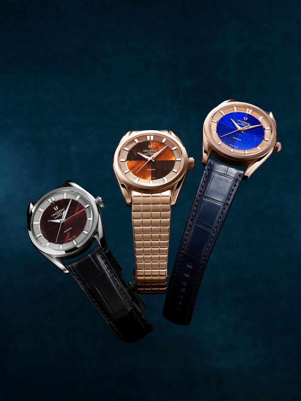 После попадания под крыло Breiting и переиздания нескольких исторических моделей бренд Universal Genève представил сразу несколько коллекций, отсылающих к его истории. Одна из самых ярких - Polerouter. Коллекцию разделили на две серии: Polerouter Prêt-à-Porter и Capsule. В первой - 5 моделей: 3 диаметром 39 мм и 2 - 37 мм (из стали или розового золота).
