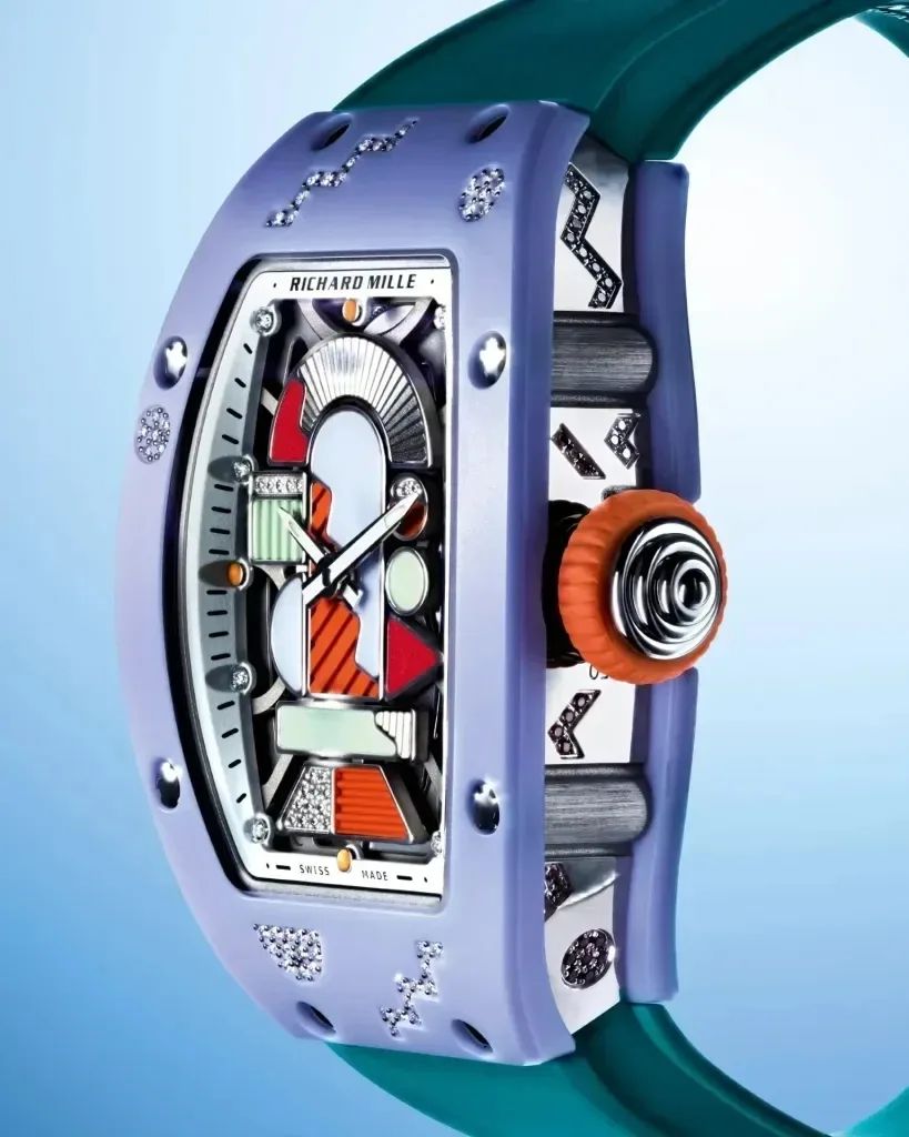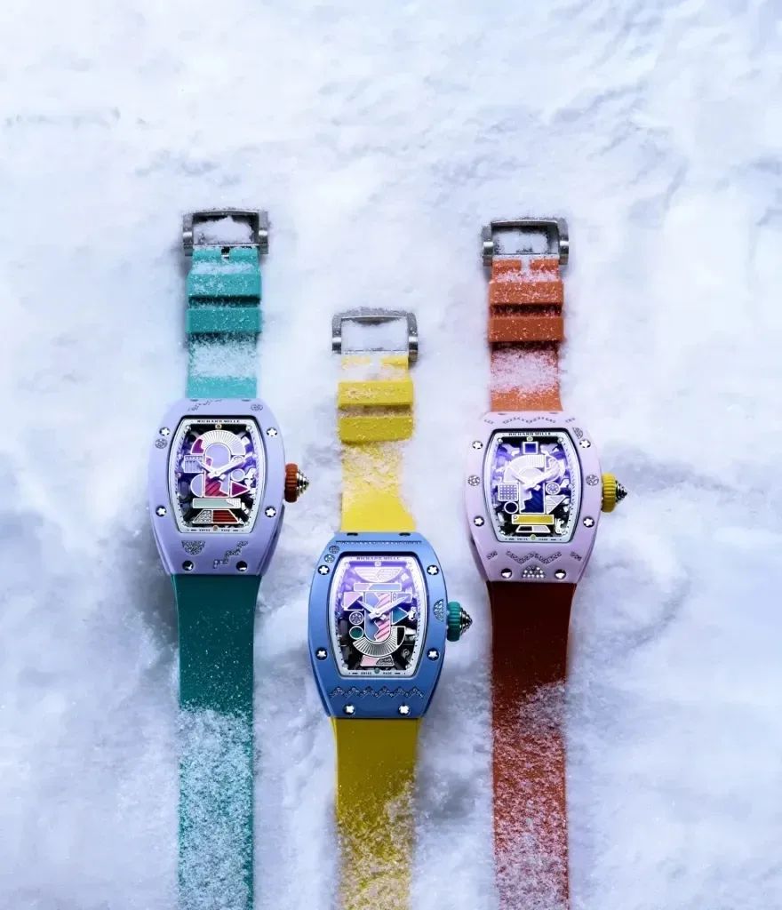 Richard Mille ставит точку в женской коллекции RM 07-01 в корпусах из цветной керамики. Финал отмечают тремя лимитками по 50 экземпляров. Они представляют собой необычное сочетание материалов и техник, объединяя элементы из цветной керамики, вырезанные лазером накладные каучуковые элементы и декорированные бриллиантами вставки из белого золота. Особое (и немного извращенное) удовольствие - инкрустация керамики. Высверливание гнезд и ручная установка камней, принимая во внимание твердость материала (TZP-керамика), требует настоящего мастерства.