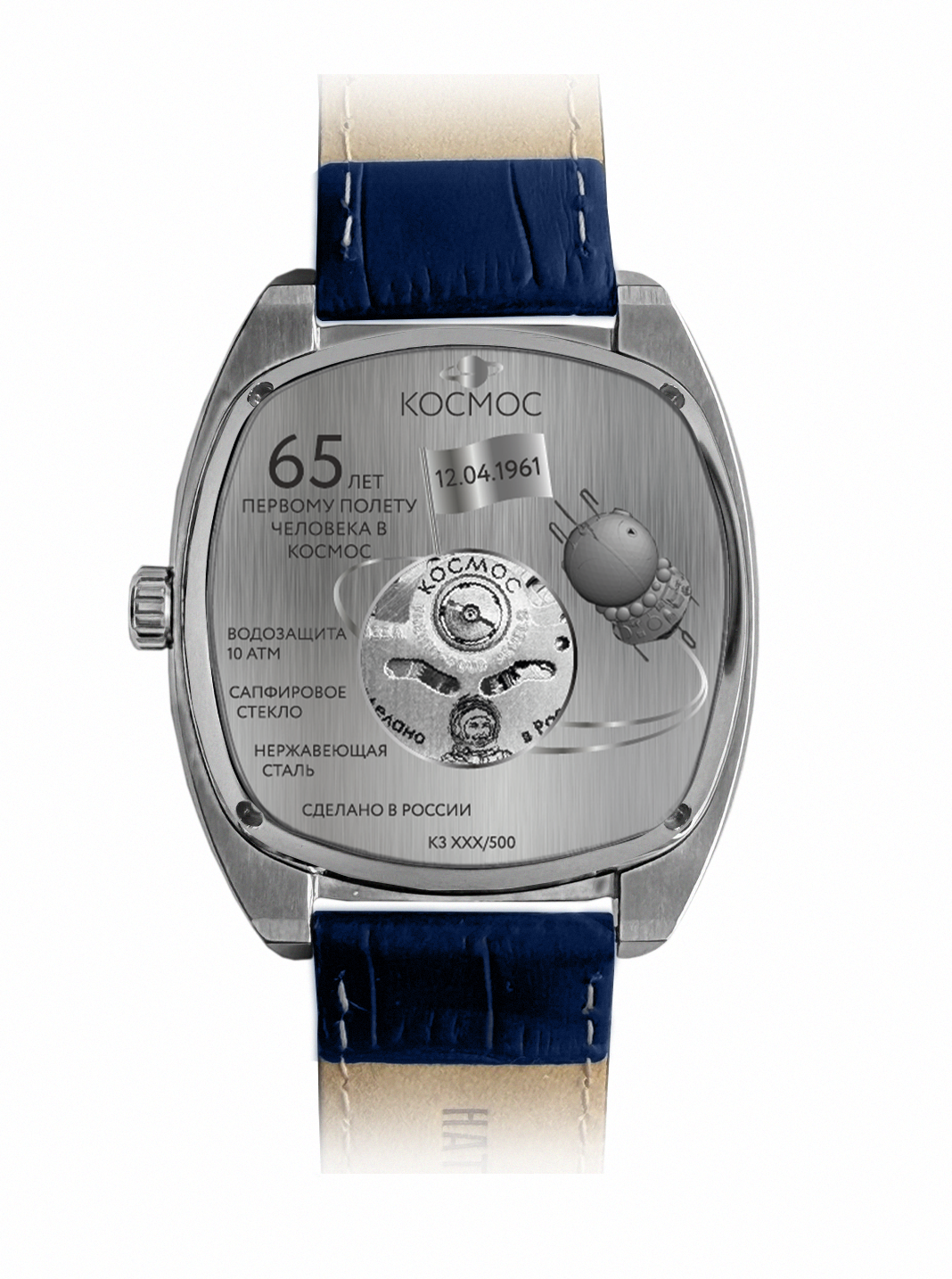 На задней крышке выгравирована историческая дата, 12.04.1961, надпись «65 лет первому полету человека в космос» и изображение спускаемого аппарата. Отдельной строкой нанесена информация об индивидуальном номере модели и тираже партии. Тираж юбилейной серии — 500 экземпляров.