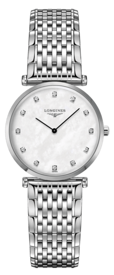 Часы Longines La Grande Classique de Longines Steel White Основные Марка Longines Коллекция La Grande Classique Модель La Grande Classique de Longines Steel White Артикул L4.709.4.88.6 Для кого Женские Стиль Классические Страна-производитель Швейцария Корпус Диаметр корпуса 33 Циферблат и стекло Инкрустация циферблата Алмазы (Бриллианты) Тип стекла сапфировое Браслет\Ремешок Вид браслета браслет Тип застежки Раскладывающая застежка (Несимметричная) Механизм Калибр L420 Источник энергии Кварц Функции Часы Минуты Секунды
